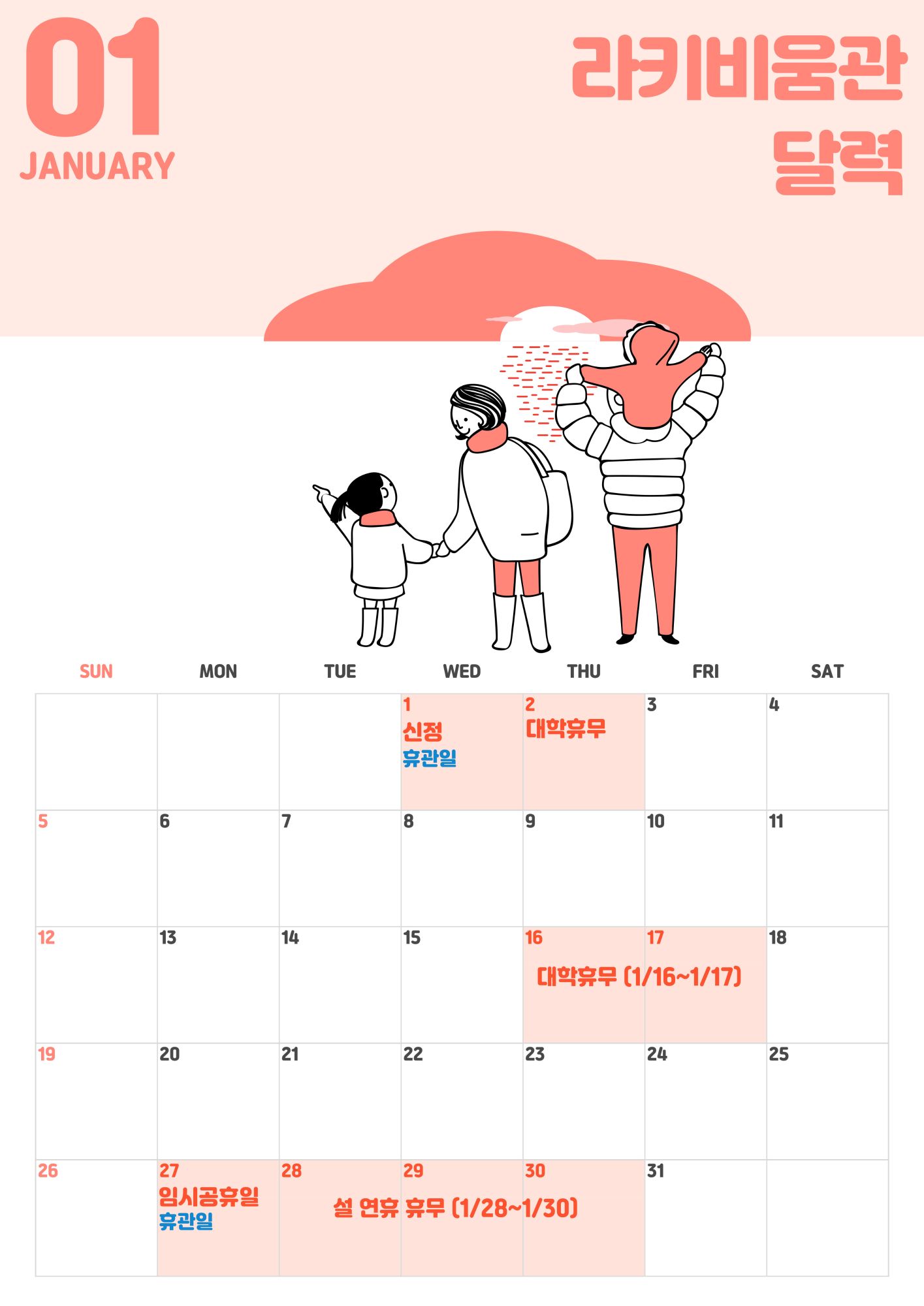 라키비움관 2025년 1월 달력