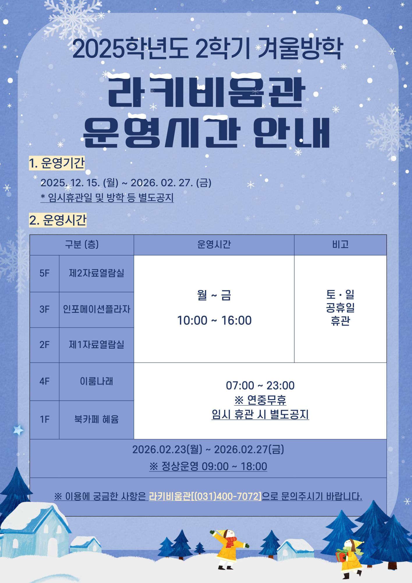 [공지] 2025학년도 2학기 동계방학 라키비움관 이용시간 안내