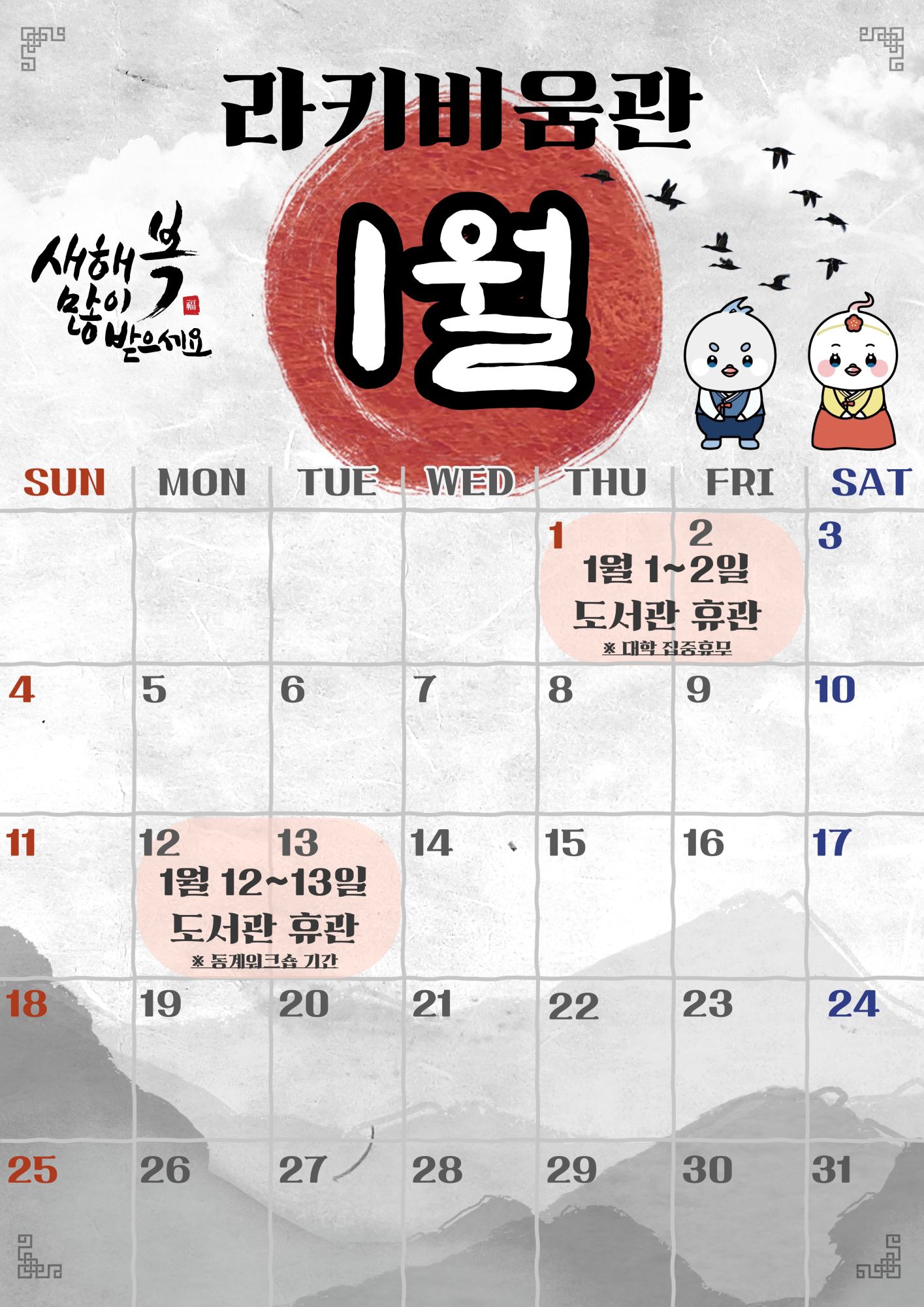 [공지] 2026년 라키비움관 1월 달력