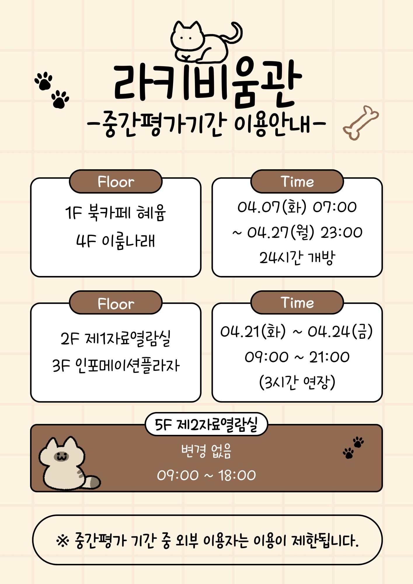 [공지] 2026학년도 1학기 중간평가 기간 라키비움관 이용시간 안내